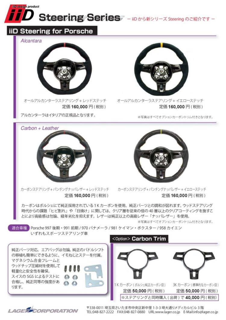 適合車は997後期・991前期・970パナメーラ・981ケイマン/ボクスター・985カイエンのスポーツステアリング車となります![]()