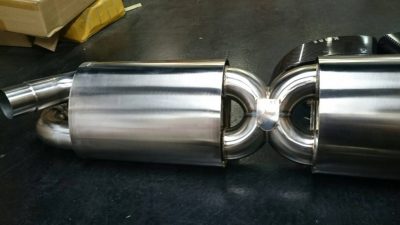 4本出しマフラーカッターは、リアスカートの間から出るようになり、デザイン的にも、ラウンドしているところを四角にして、印象を変えています。