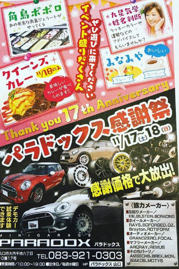 次の週の11/17(土)~11/18(日)は山口県のパラドックスさんで開催の「パラドックス周年祭」