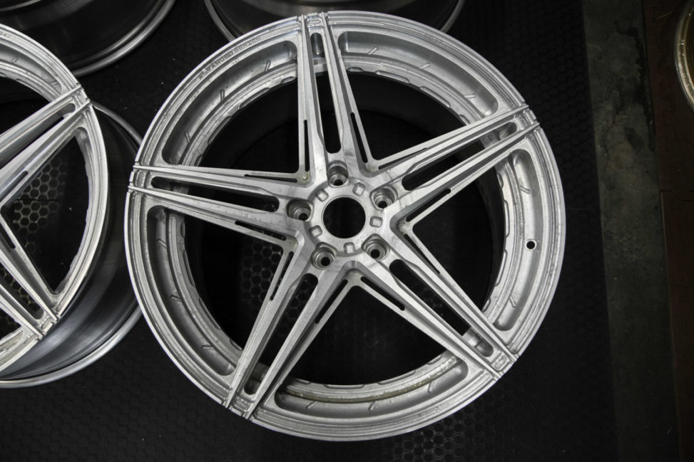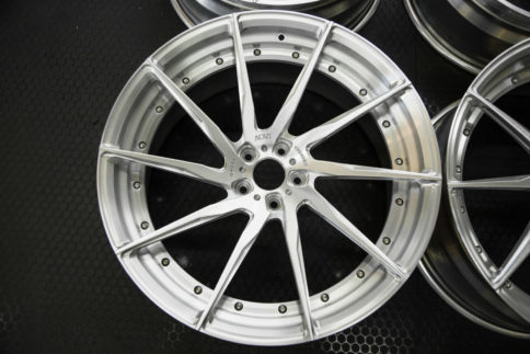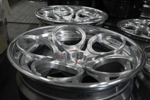 そして今日ご紹介するホイールは全部削り終わって生の状態で在庫されてます。(生とは削ったまま塗装を施してない状態です)何故生のままかと言いますとフィニッシュはお客様が注文後自分好みに色を選んで仕上げられ為にです。ADV1を注文したいけど2~3カ月待ちたく無いお客様にはピッタリだと思います。(フィニッシュを変える場合は1~2週間かかります)
