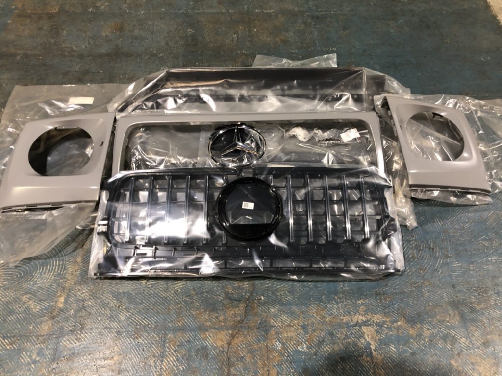 外装はG350/550のAMG LINEのお車ならフロントバンパー+フェンダー+フロントグリルで仕様になります。