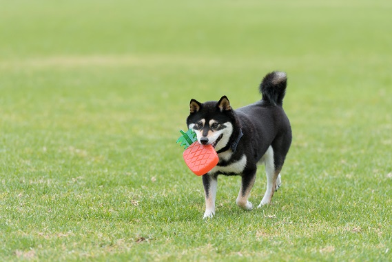 柴犬が加えているのは、こちらも夏に大人気のRosewood バイオセーフトイのパインアップル!!!