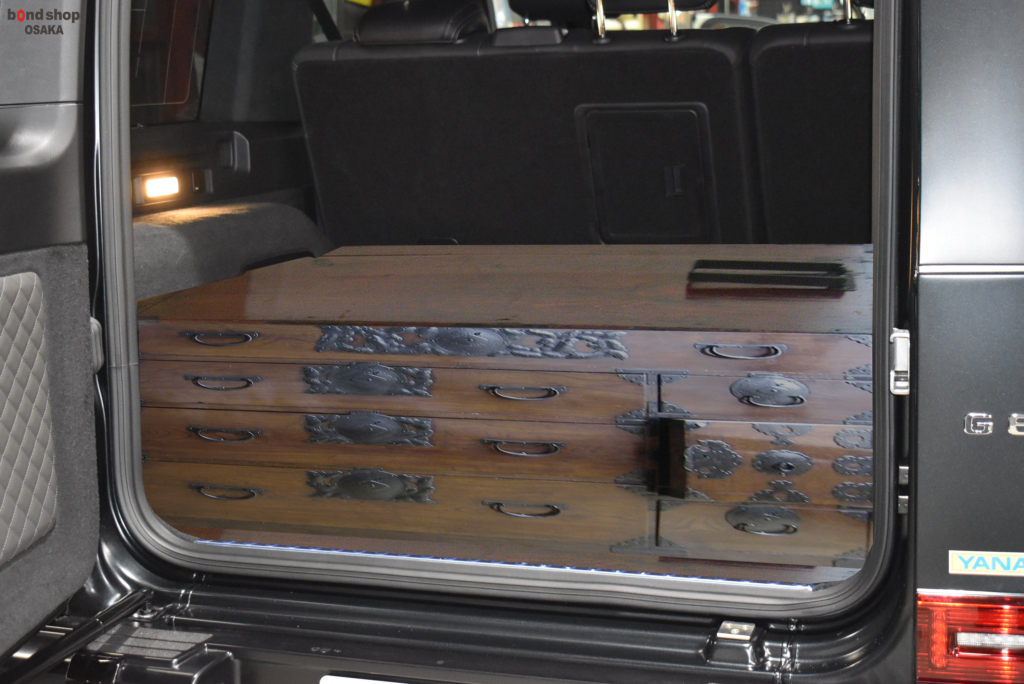 ラゲッジ・フラット・スペースの通称「タンス」にちなんでリアルな箪笥で仕上げました。