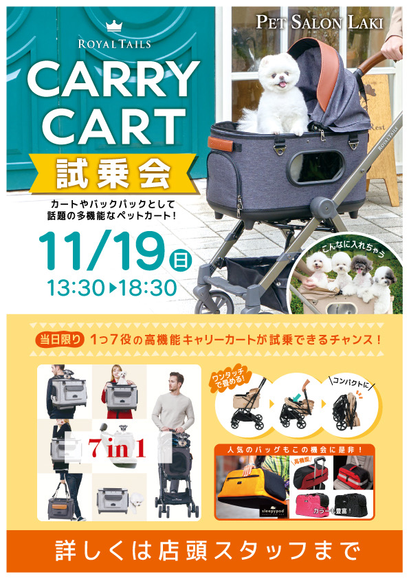 Royal Tailsのカートは、押し心地は感動するレベルなので、是非試乗だけでも試しに来てみてください!!